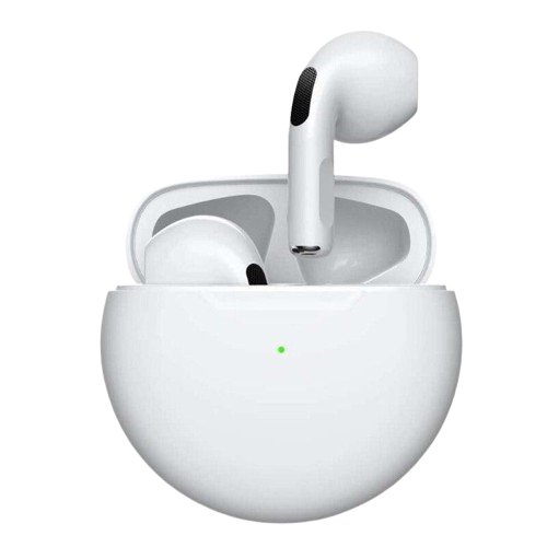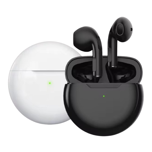 Auriculares inalámbricos TWS Air Pro 6. Auriculares inalámbricos diseñados ergonómicamente para adaptarse perfectamente a tus oídos, muy ligeros y cómodos de llevar. Diseño de pulsación táctil para contestar/colgar llamadas, reproducir o pausar/cambiar música. Con sistema de cancelación de ruido. Compatible con Android e iOs.