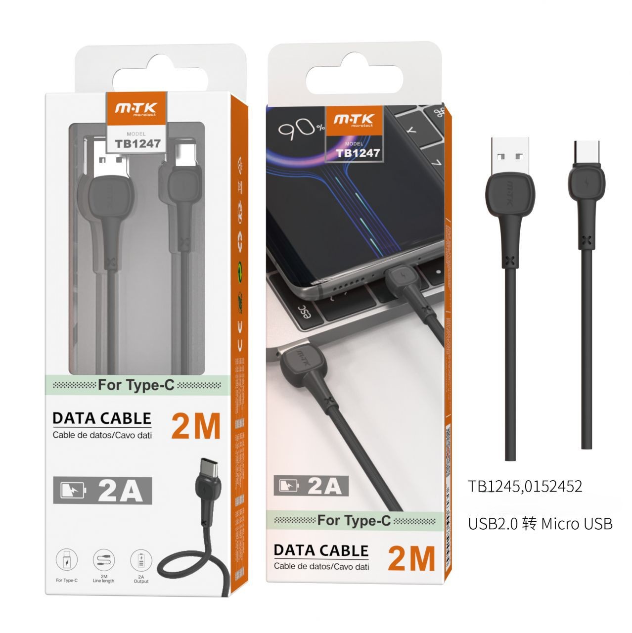 TB1247 NE Cable de Datos M.Karron para Type C, 2,0A 2.0M, Negro