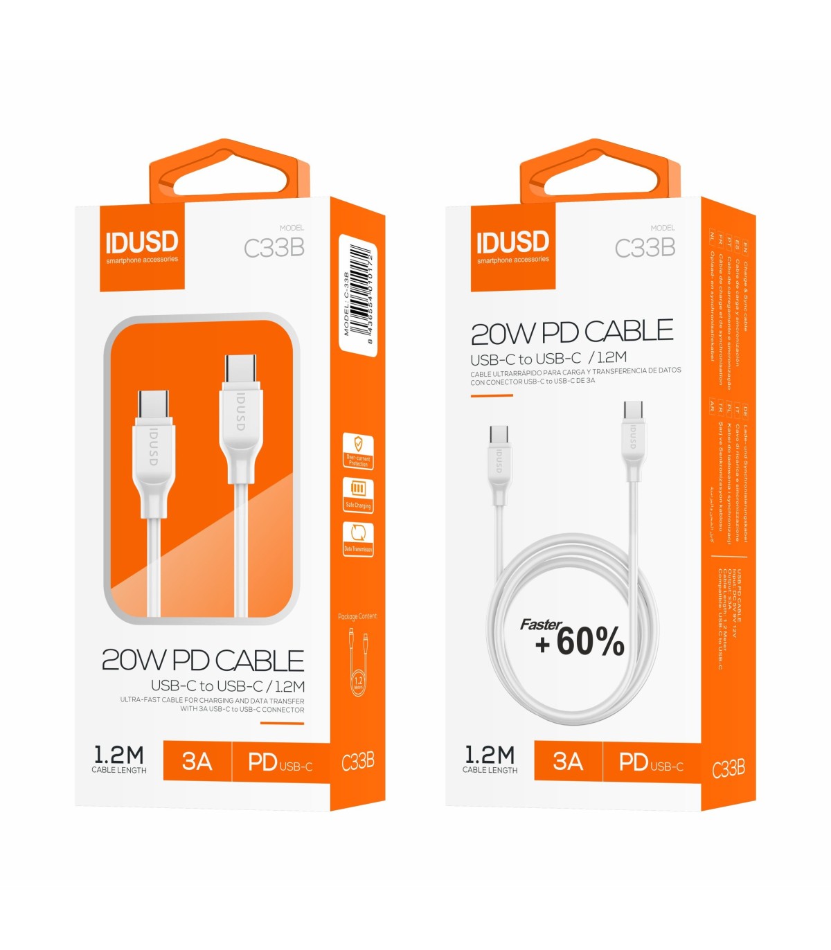 Diseñado para ser resistente y compacto, este cable es perfecto para el uso diario. Además, es compatible con el cargador PD3.0 CHARGER IDUSD (Ref: D60B), asegurando una carga segura y eficiente.