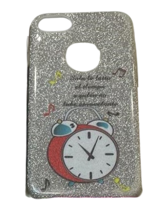 Diseño con un reloj , fondo brillo gris ,protección del movil.