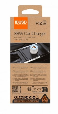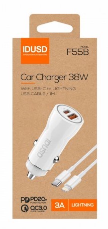 CARGADOR COCHE IDUSD – TIPO.C+LIGHTNING F55B 38W
