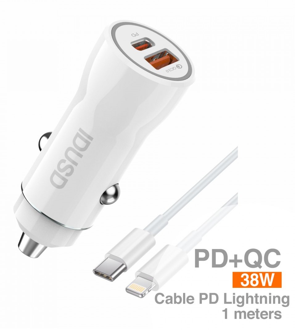 Cargador coche PD+QC 38W + Cable PD Lightning – F55B