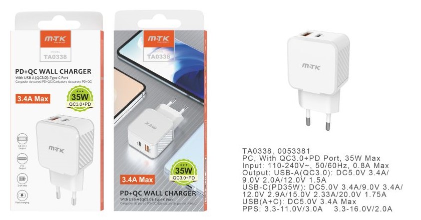 CARGADOR RED MTK – TA0338 TIPO.C-USB+TIPO.C 35W
