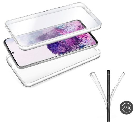Funda resistente para móvil, de tipo transparente, silicona semirígida 360º, cubre parte frontal y trasera del smartphone.