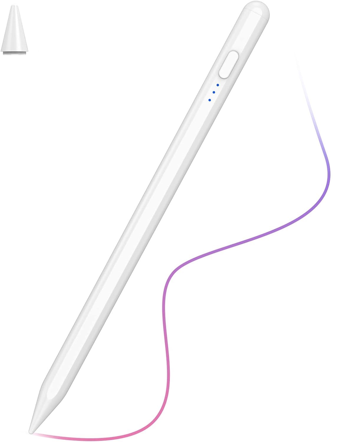 Una punta de repuesto. Con la función de rechazo de la palma de la mano, solo reconocerá la punta del lápiz óptico, lo que le permite descansar su mano cómodamente en la pantalla mientras escribe o dibuja, lo que le permite decir adiós al guante de lápiz óptico antifricción. Con la función de adsorción magnética. Universal