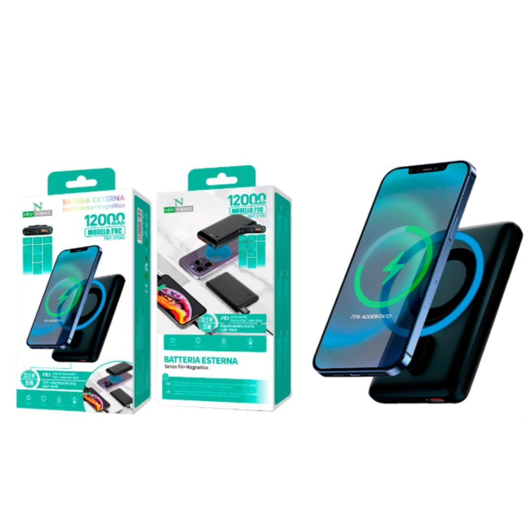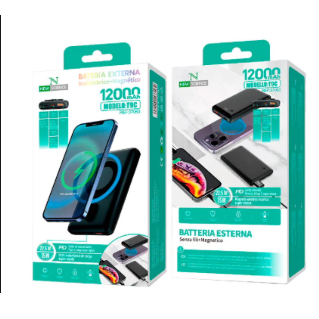 BATERIA EXTERNA (Power Bank) – 12000 mAh CARGA MAGNETICA -NEW SCIENCE T9C