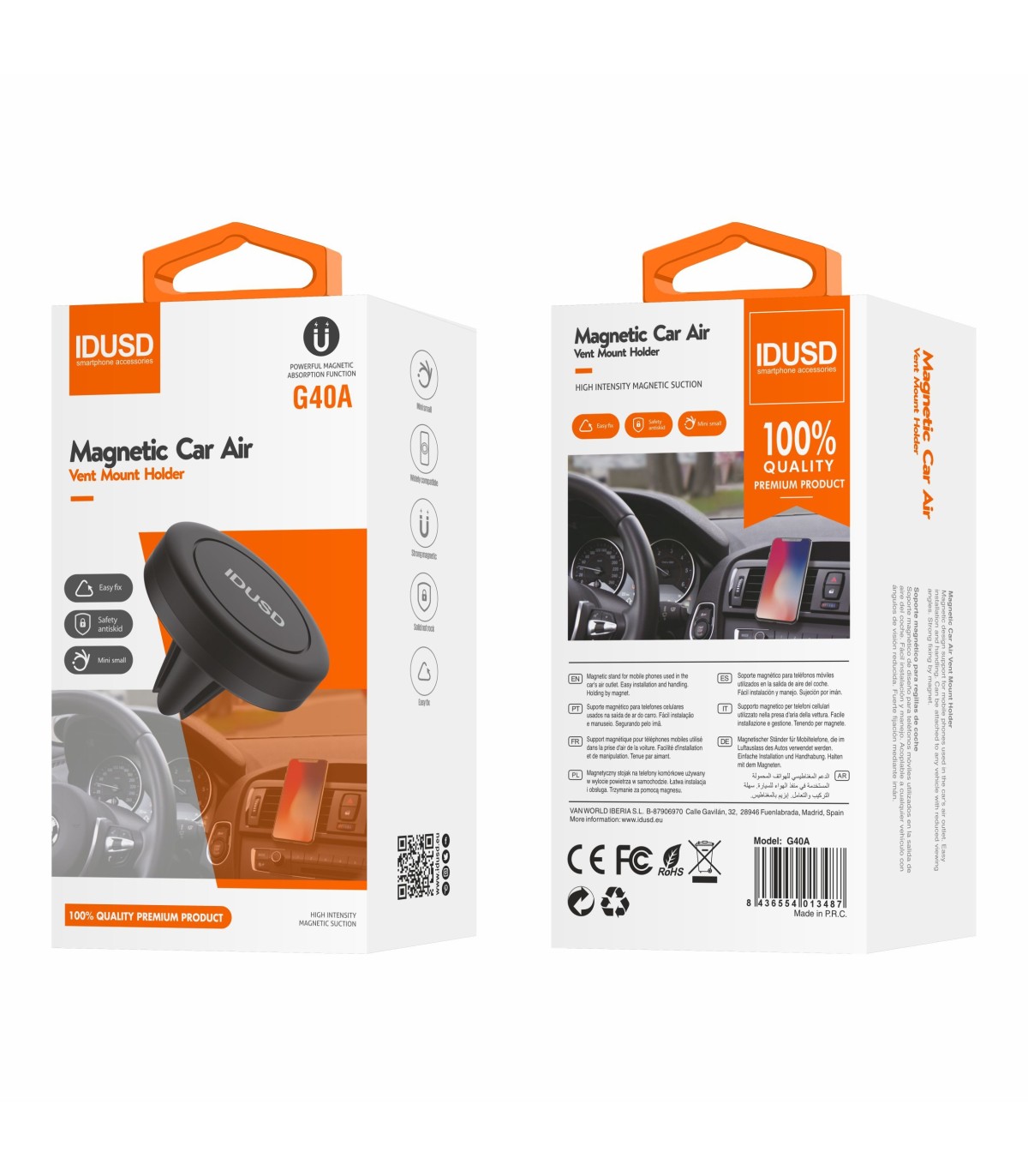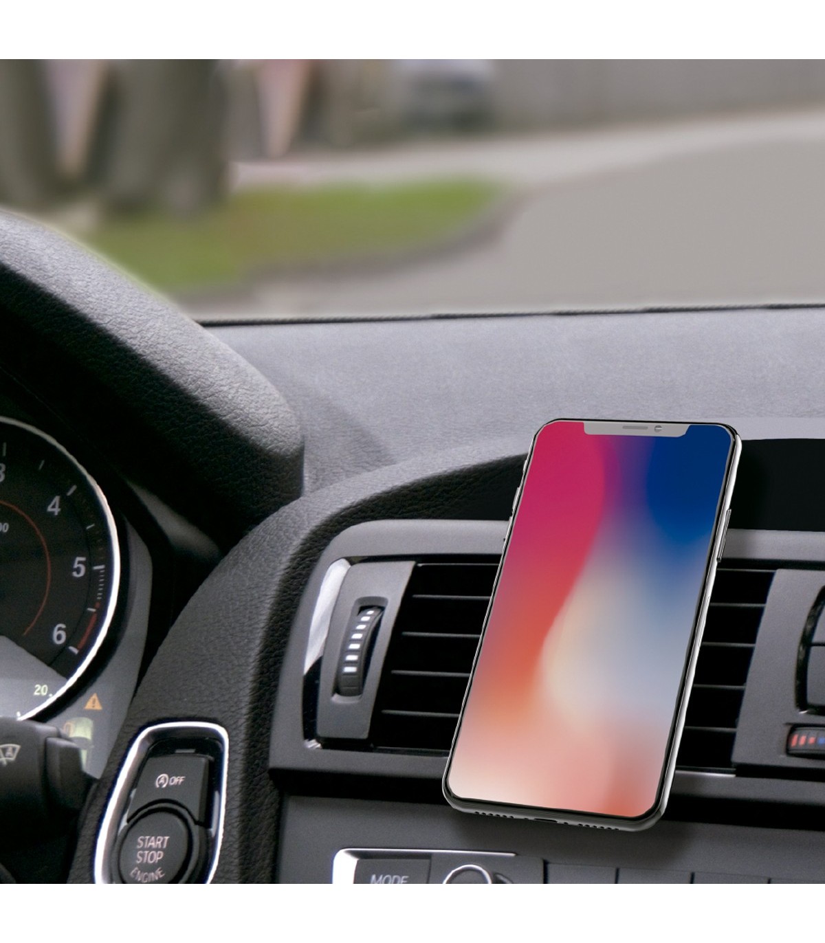 Car Air – G40A.El soporte magnético de última generación para coche, realizado con la exclusiva tecnología magnética gracias a la cual es seguro, fuerte, simple y estable. Con el gancho universal que lleva en la parte trasera, se fija a las bocas de ventilación garantizando una integración completa entre el soporte y el coche.